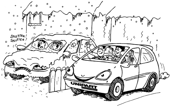 DON'T GET CAUGHT OUT THIS WINTER!Early morning car starting difficulties are the biggest cause of motoringinconvenience in the winter months. But problems can be avoided, says Unipart, Europe's leading automotive parts and accessories company under a single brand. The press release was aimed to get readers to visit Unipart Car Care Centres, which would carry out a check including the engine's condition, the strength of the anitfreeze and state of the battery. |